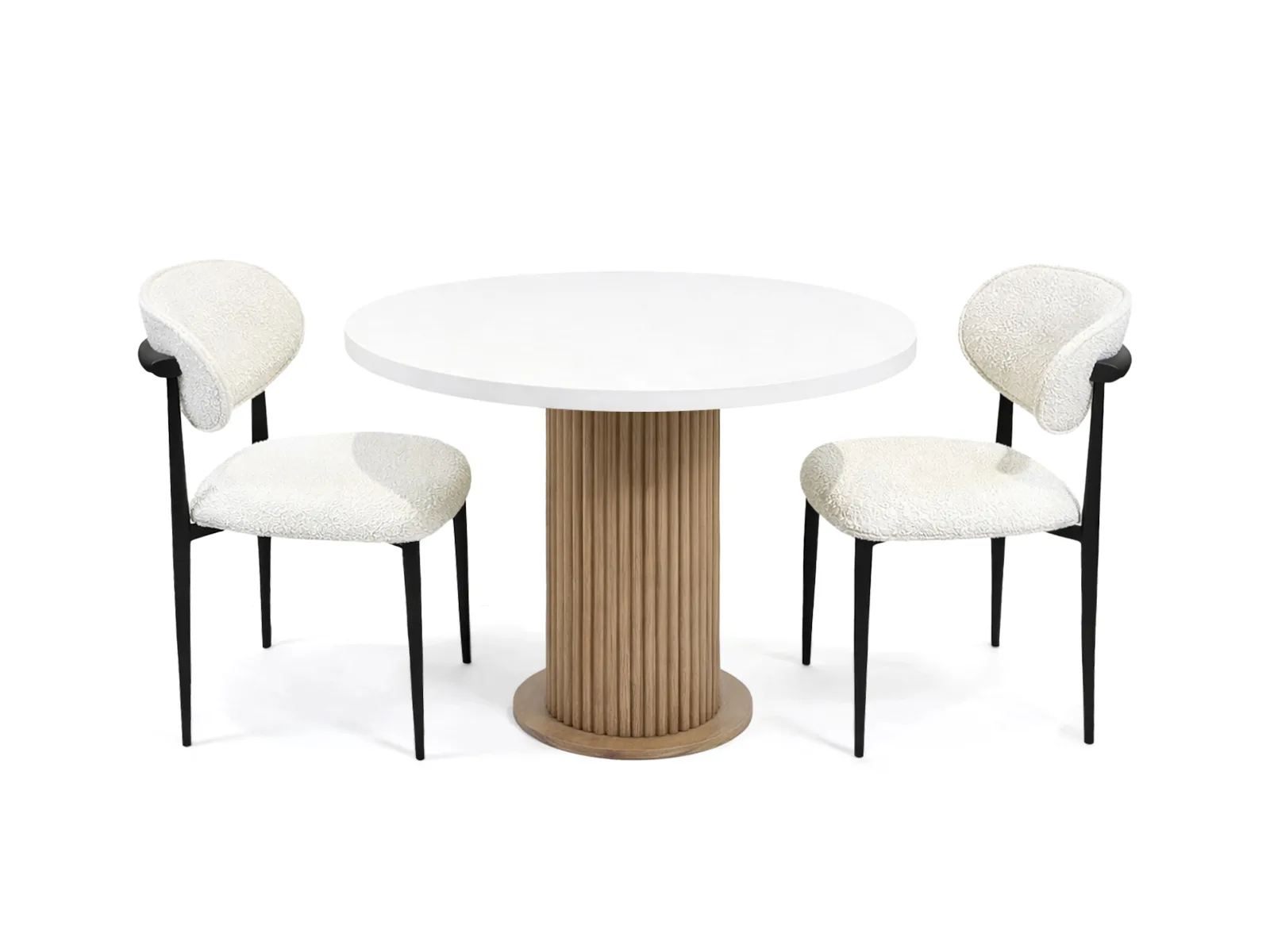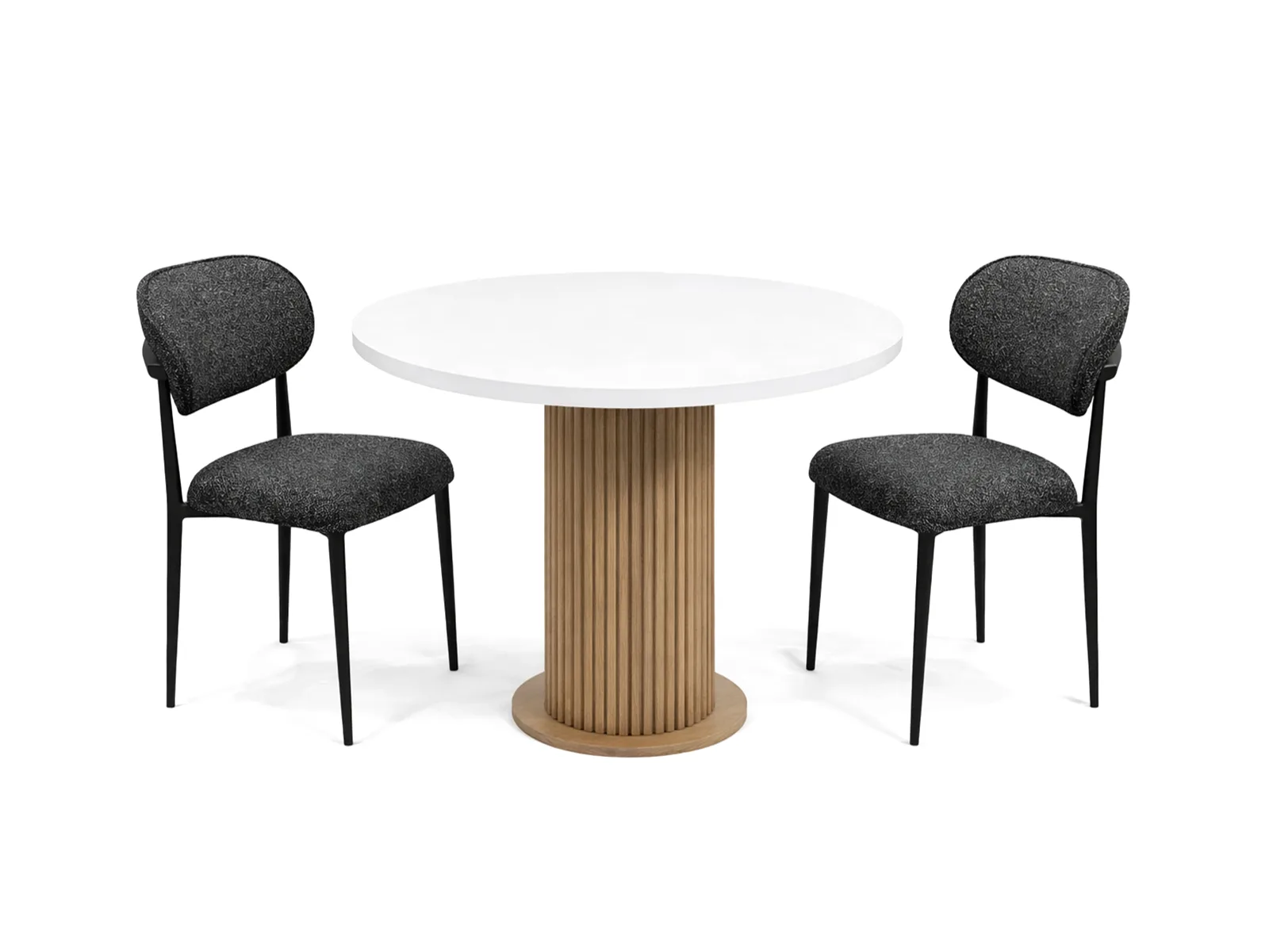 Yuvarlak masa formu ve modern çizgili ayak tasarımı,