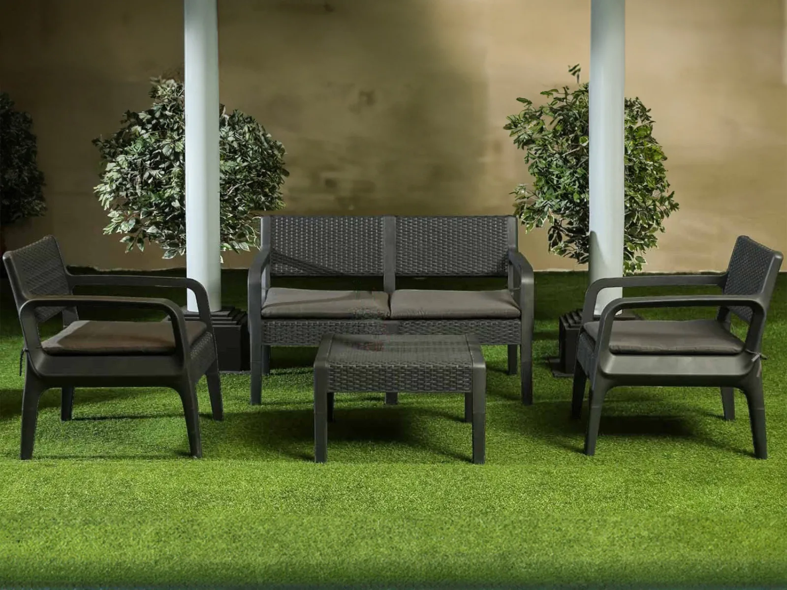 Niron Prime Latte Plastik Rattan Görünümlü Bahçe Takımı