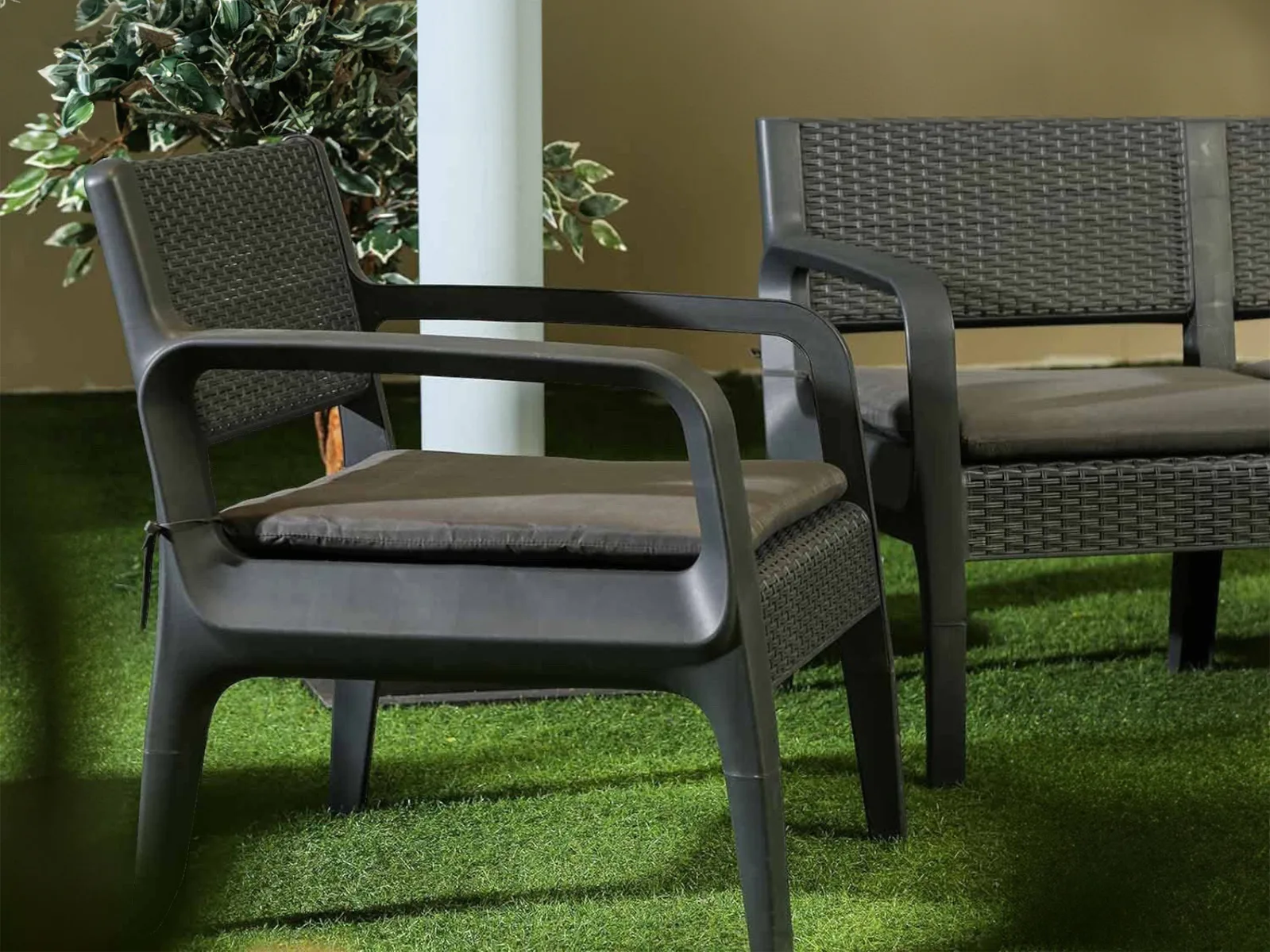 Latte Plastik Rattan Görünümlü Bahçe Takımı, kompakt ölçüleri ve sade formu ile