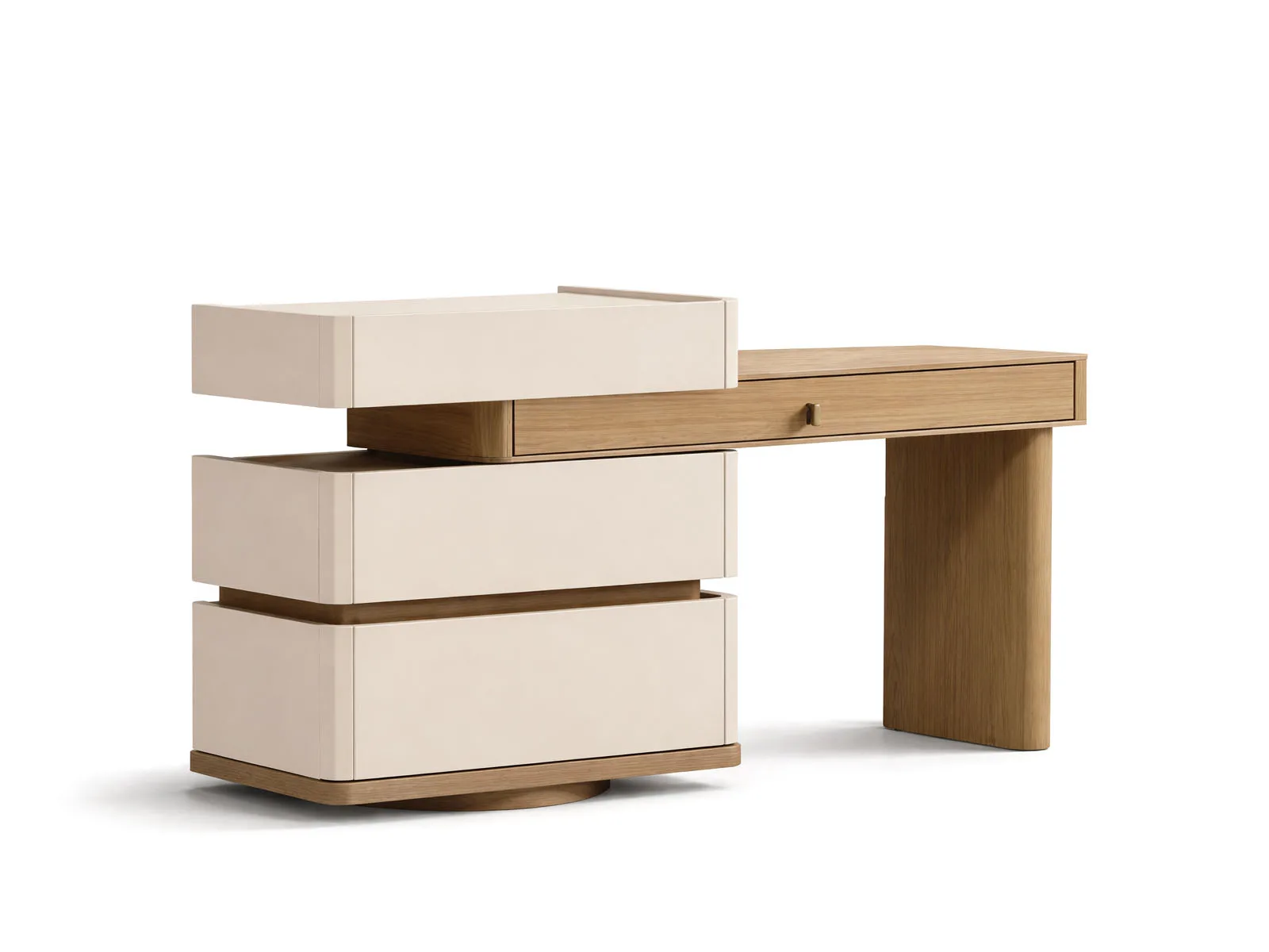 Geniş üst tablası ve dengeli gövde oranlarıyla işlevsel bir kullanım sunar.