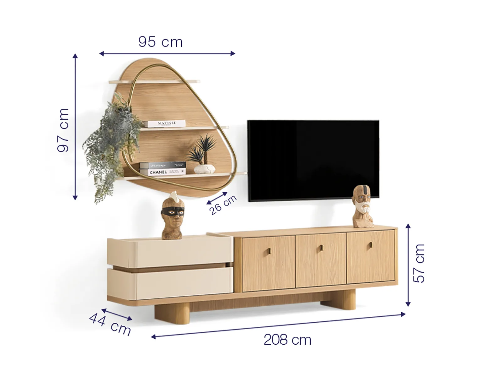 TV Ünitesi Ölçüsü 208 cm (G) × 57 cm (Y) × 44 cm (D)