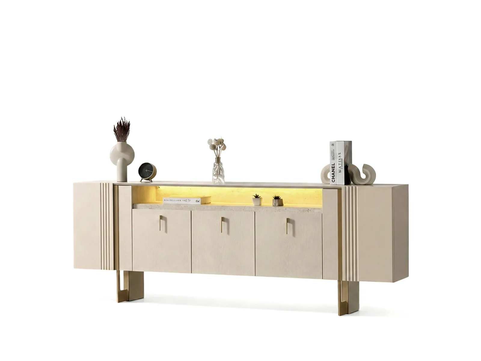 yemek odasında “premium” bir odak oluşturur. Üst yüzeyi servis ve dekor için geniş bir alan sağlarken,
