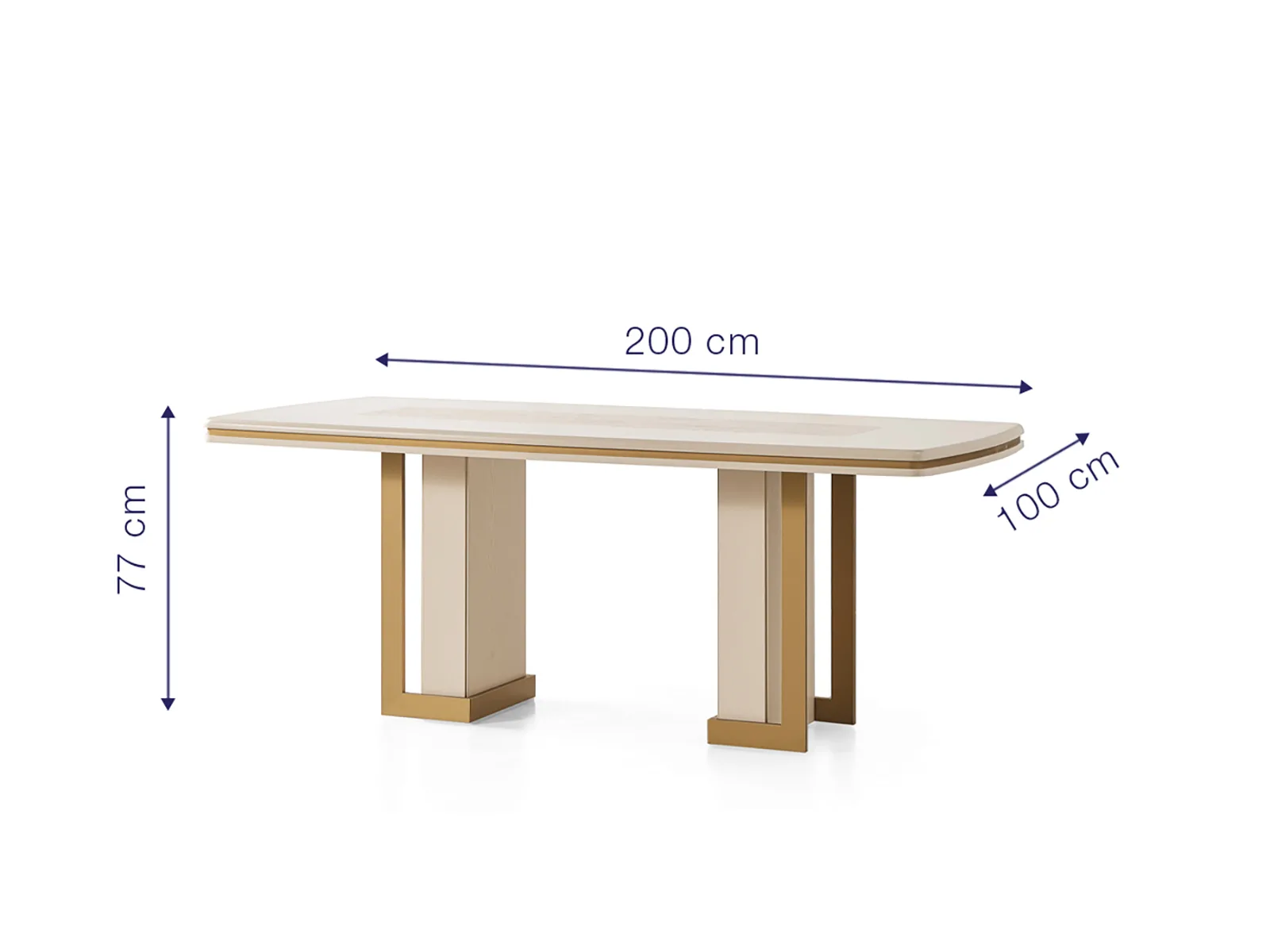 200 cm uzunluğundaki masa yüzeyi, günlük kullanımda ferah bir alan sunarken