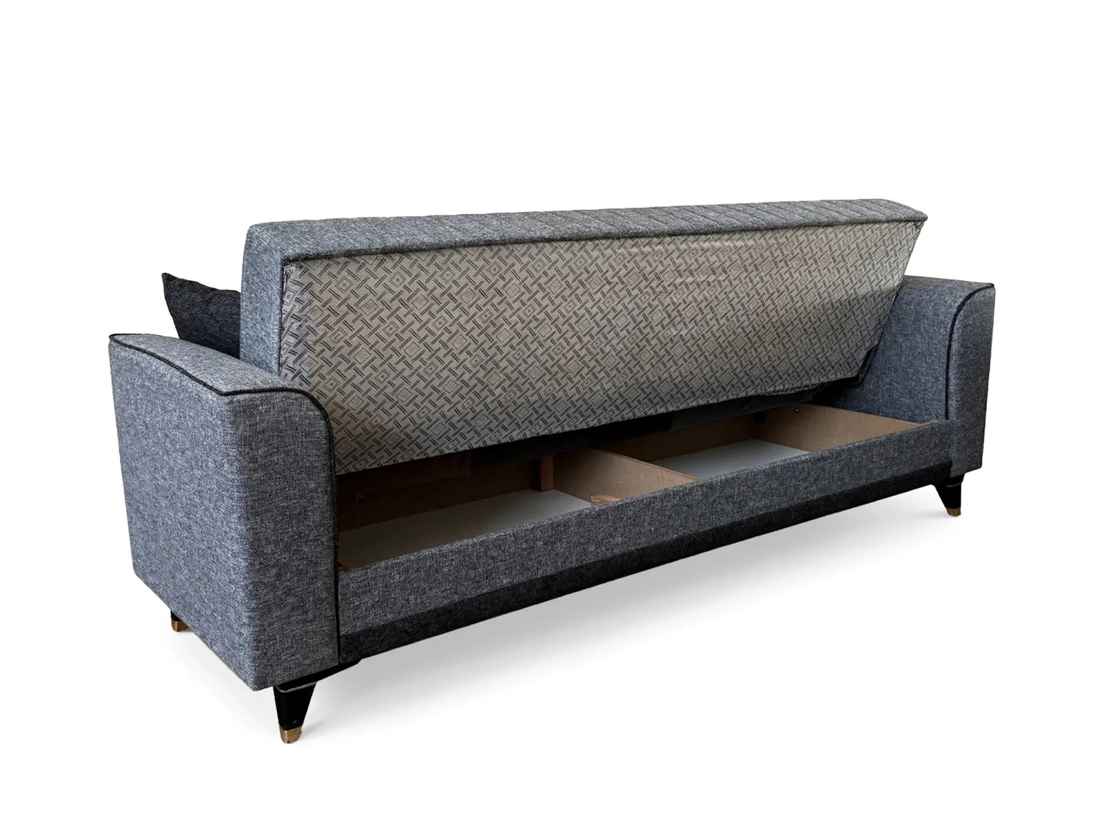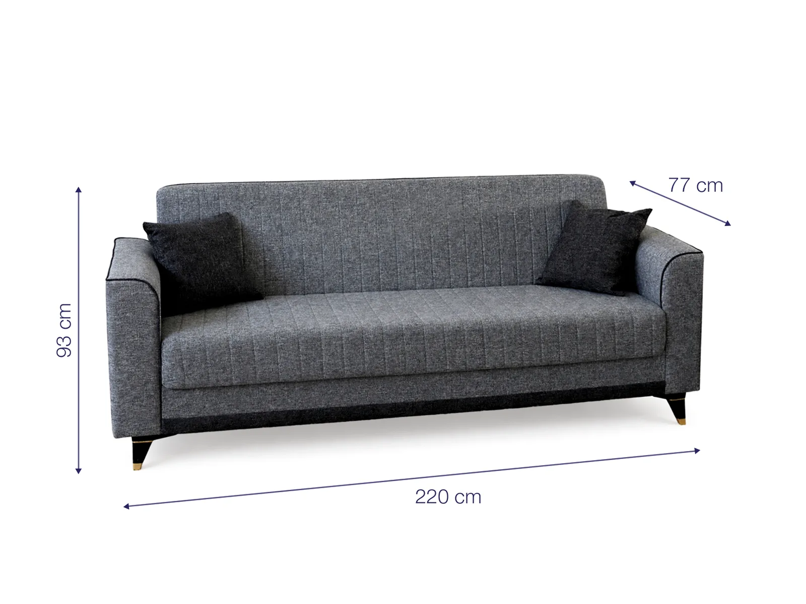 Minimal formu, dengeli oturumu ve pratik dönüşüm mekanizması sayesinde günlük kullanımda konforlu bir kanepe, ihtiyaç halinde ise rahat bir misafir yatağı olarak kullanılabilir.