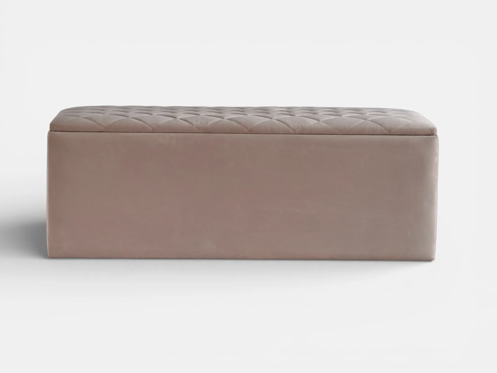 Krem tonlu baza ve başlık, yatak odasında sade ve bütünlüklü bir görünüm oluşturur; sandıklı yapı düzeni destekler.