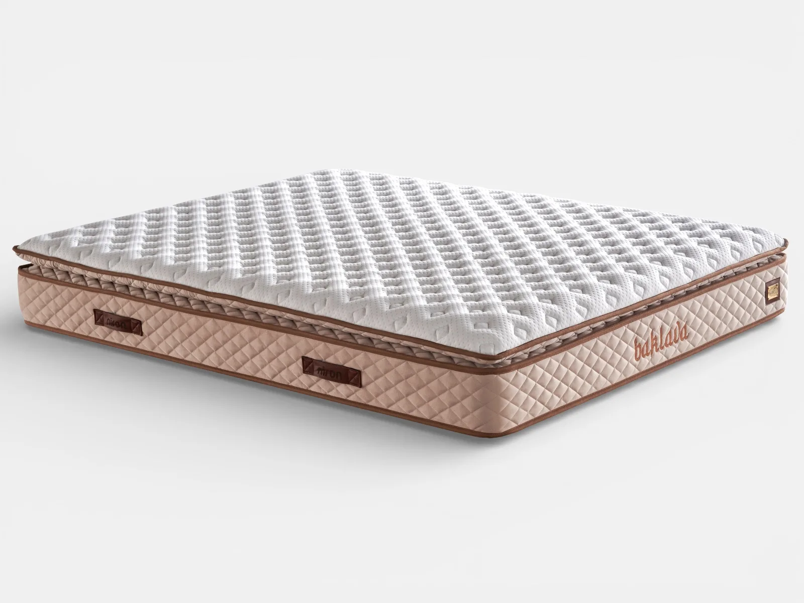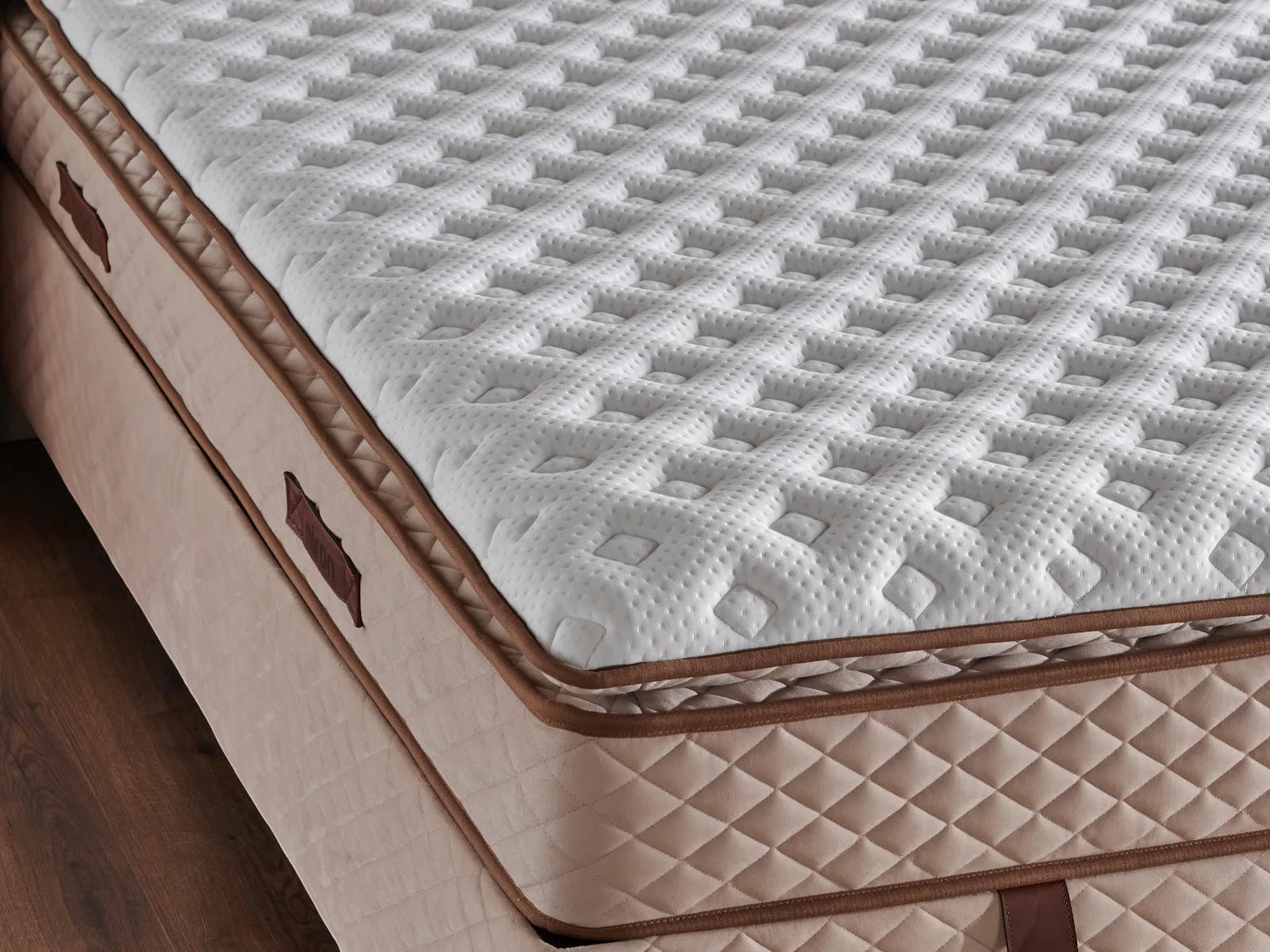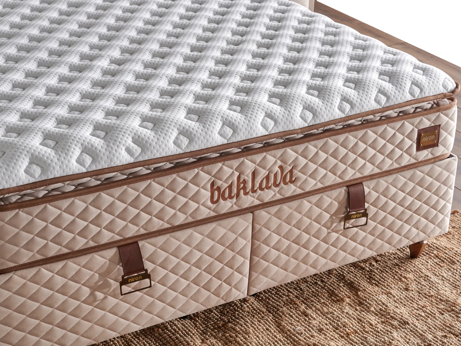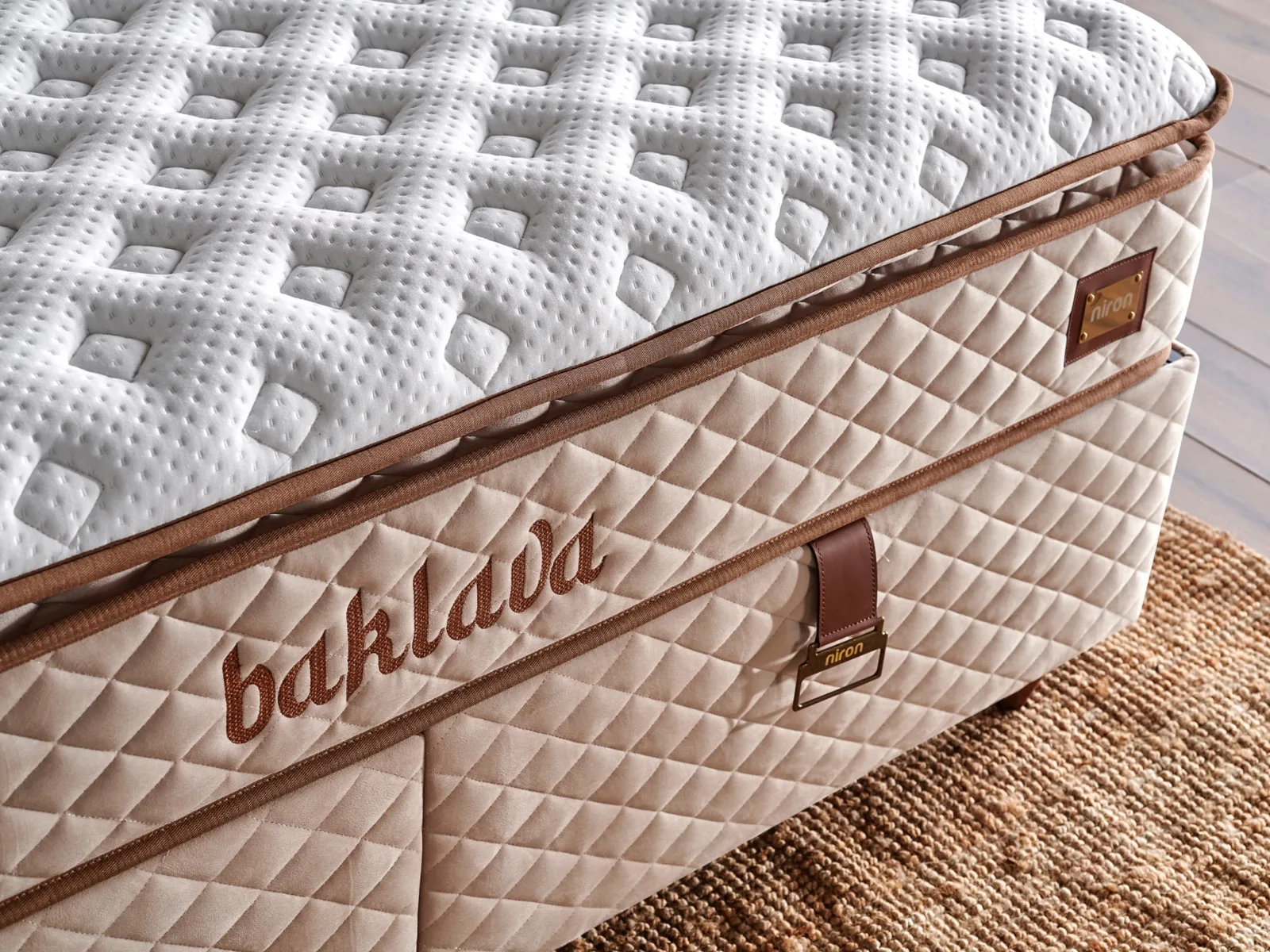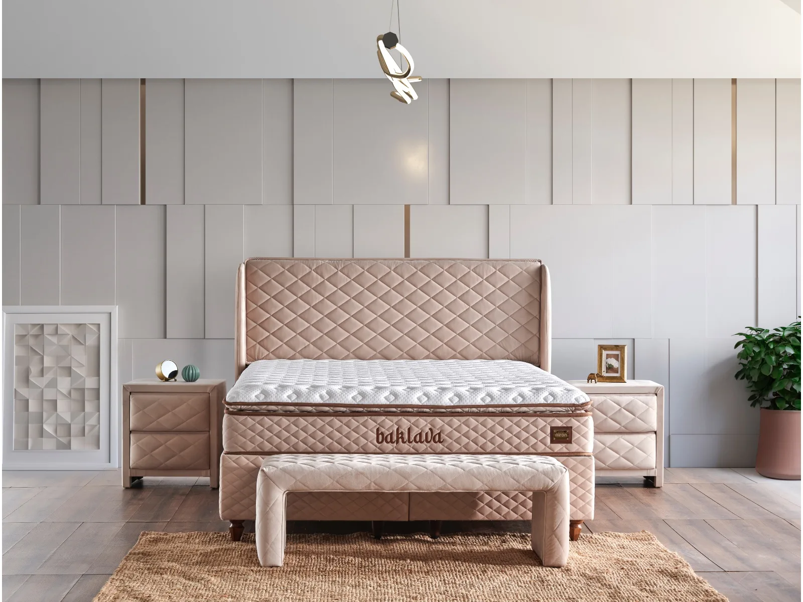 Niron Prime Baklava Yatak Seti, sertlik seviyesi ve dengeli yapısıyla uyku sırasında vücudu doğru şekilde desteklemek üzere tasarlanmıştır. %80 sertlik oranına sahip full ortopedik yatak, omurganın doğal hizasını desteklemeye yardımcı olur. MultiSpring paket yay sistemi, uzun süreli kullanımlarda formunu koruyan dengeli bir destek karakteri sunar. Nefes alabilen pamuklu örme kumaş yüzey ve 30 cm yatak yüksekliği, dolgun ama kontrollü bir uyku profili oluşturur. Krem tonlu sandıklı baza ve sade başlık formu, yatak odasında bütünlüklü ve sakin bir görünüm tamamlar.