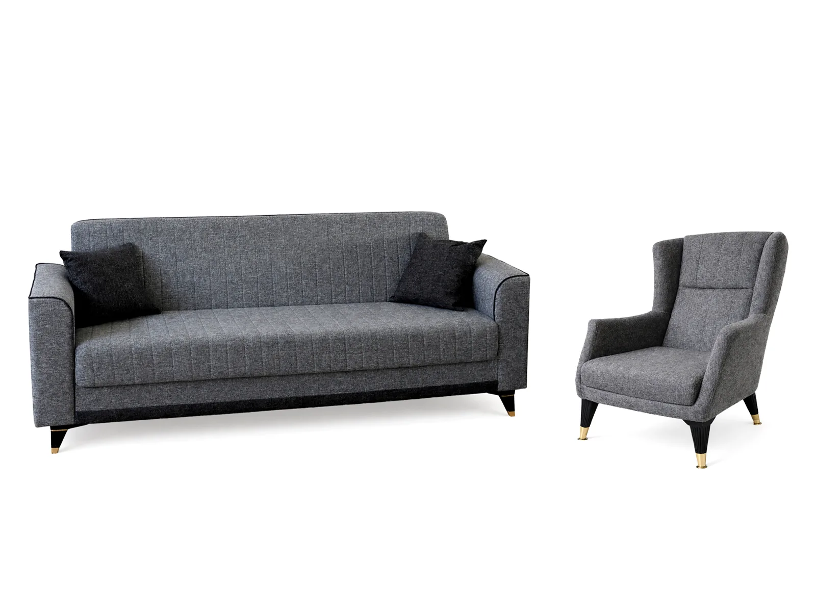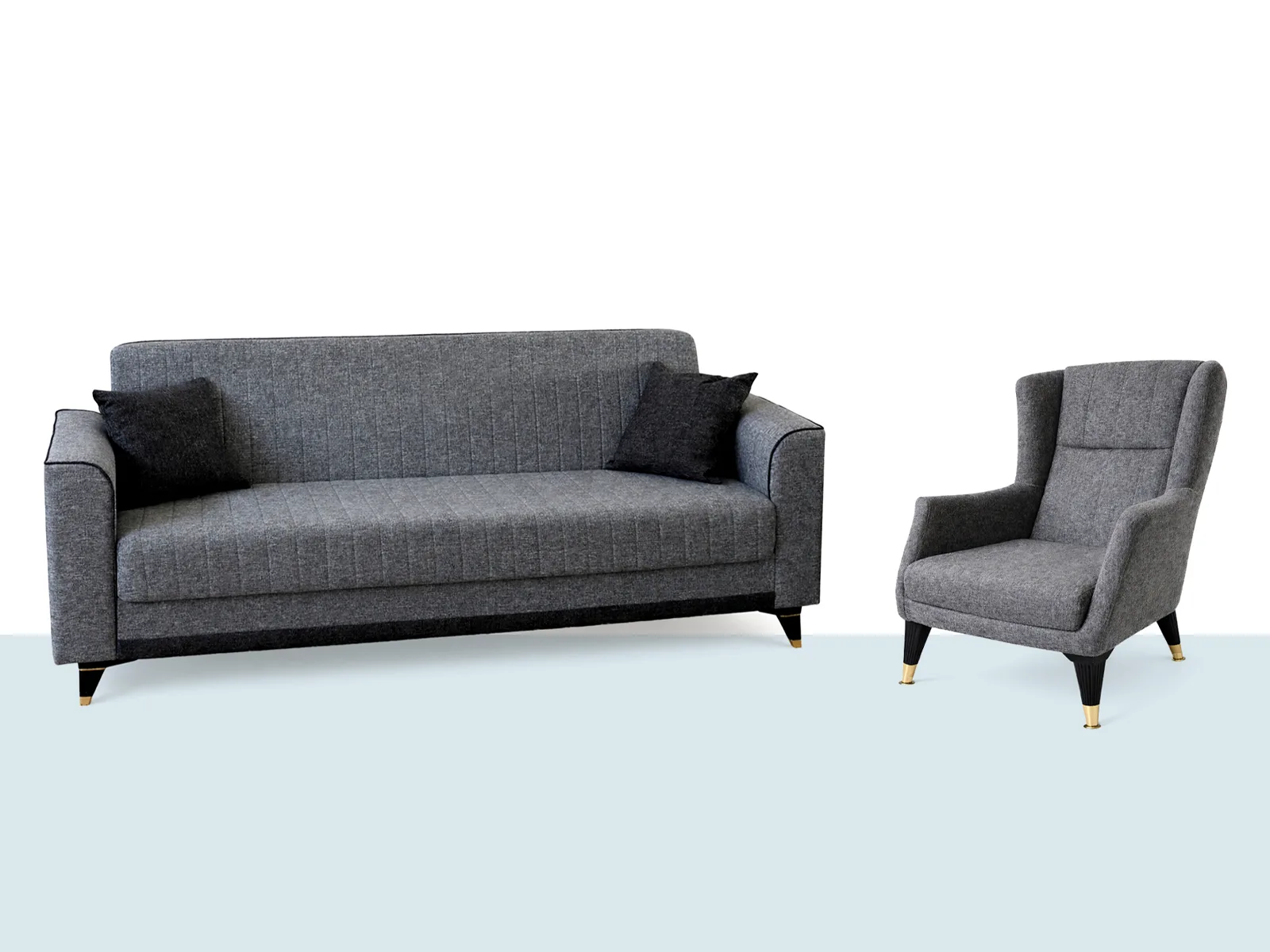 - Çok Amaçlı Kullanım: Kanepe günlük oturum ve misafir yatağı işlevi sunarken, berjer modülleri tamamlayıcı oturma alanı sağlar.