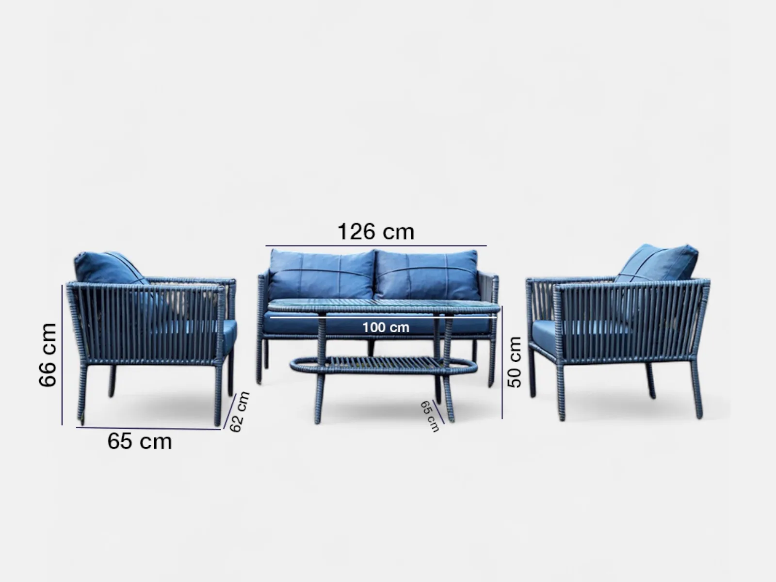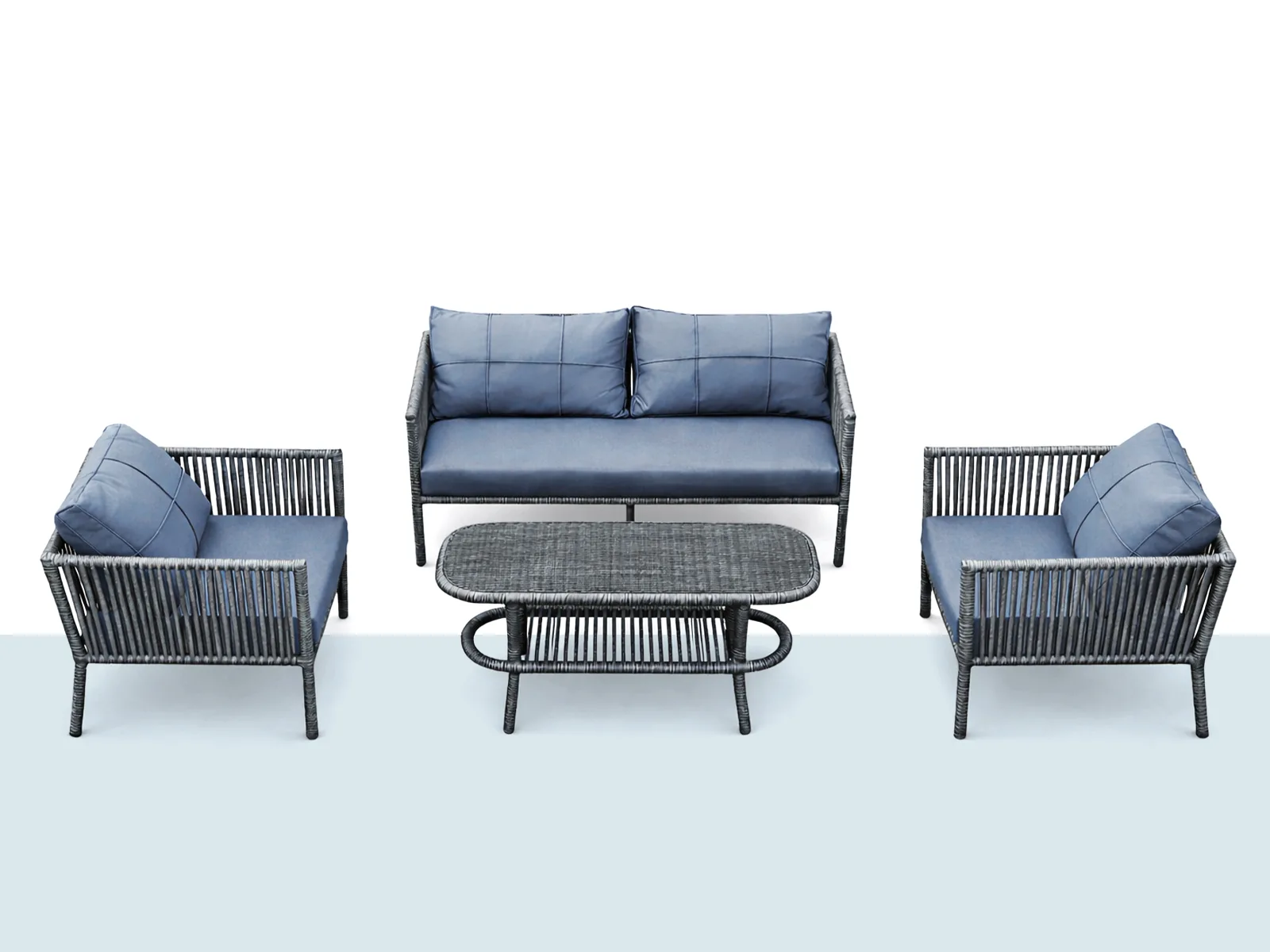 - Örgü yüzey: Rattan görünümlü, dış mekâna uygun plastik iplik.