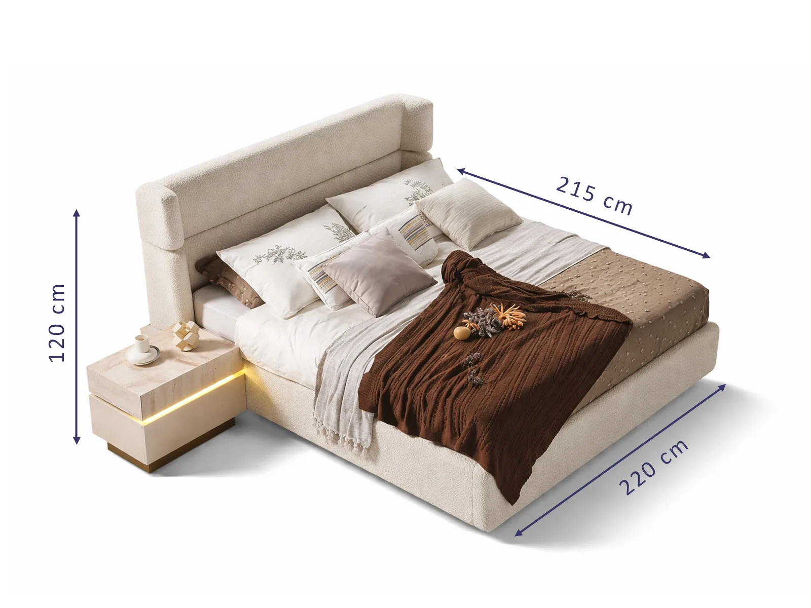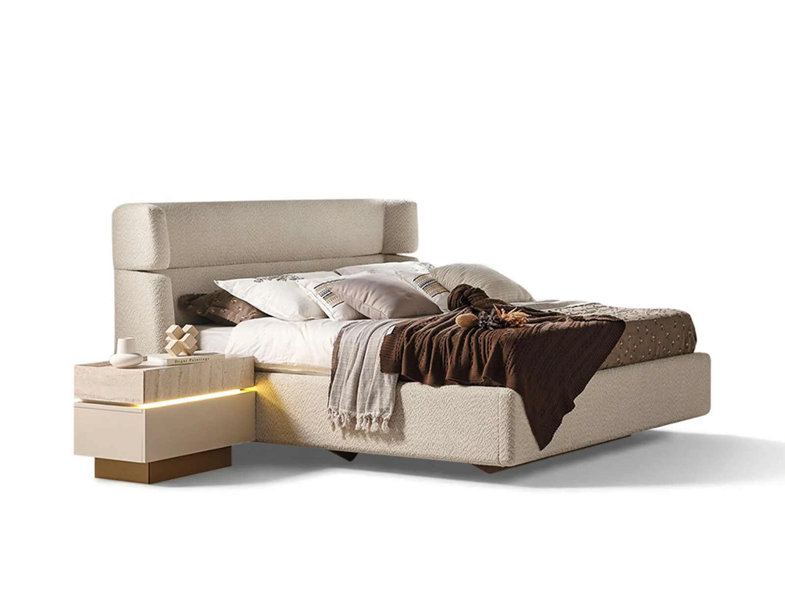 seriye özgü komodin entegrasyonuyla modern bir yatak alanı oluşturur.