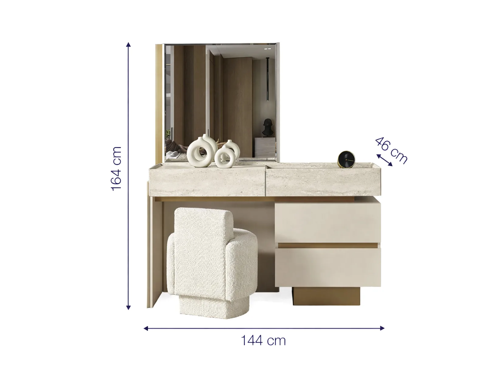 - Toplam Yükseklik (Ayna Dahil): 164 cm