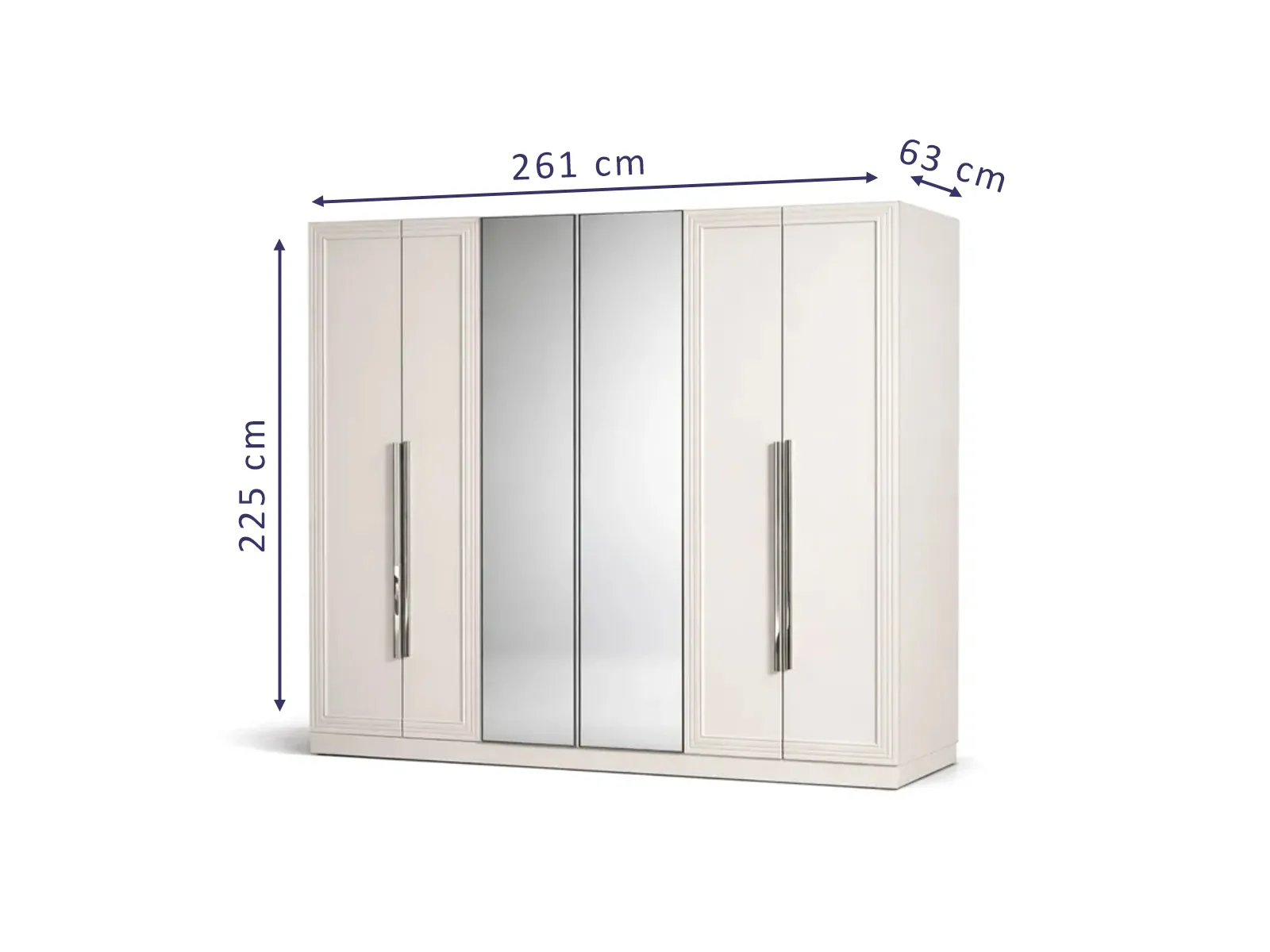 Verona 6 Kapılı Gardırop; geniş iç hacmi, modüler raf düzeni ve askı alanları ile