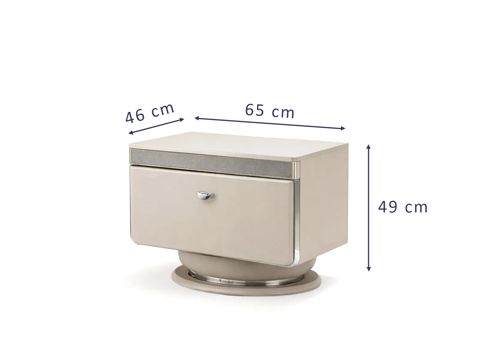 65 cm genişlik ve 46 cm derinlik ölçüsü,